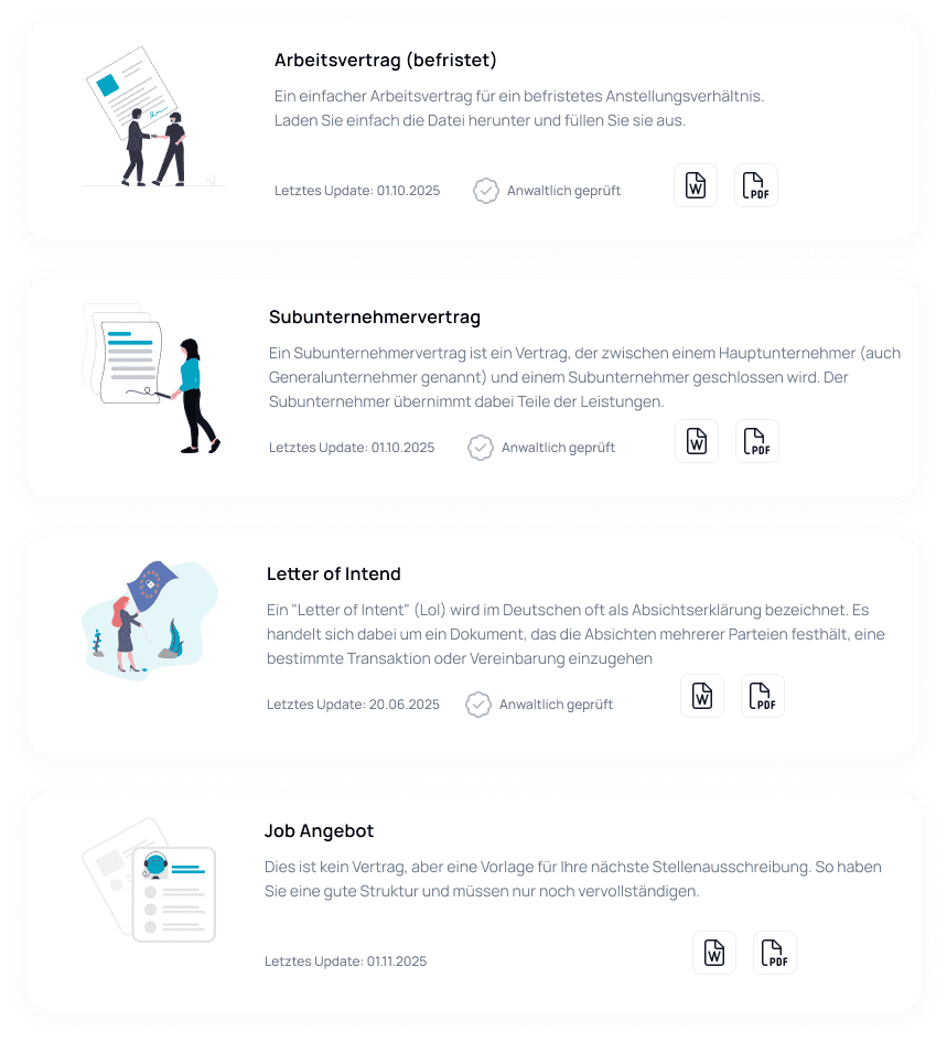 VertragsvorlagenAnwaltlich geprüfte Vorlagen für jeden Anlass